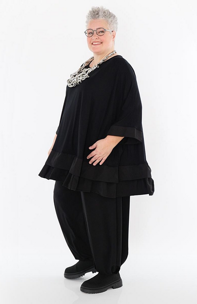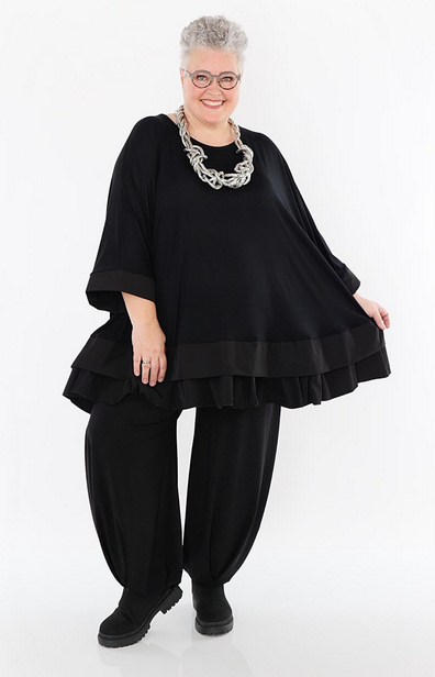 Ganzjahr Big Shirt in A-Form aus feiner Jersey Qualität. Einheitsgröße, tragbar bis EU-Größe 68, wird gern auch von Kundinnen mit kleineren Größen oversized bzw. locker, leger getragen.