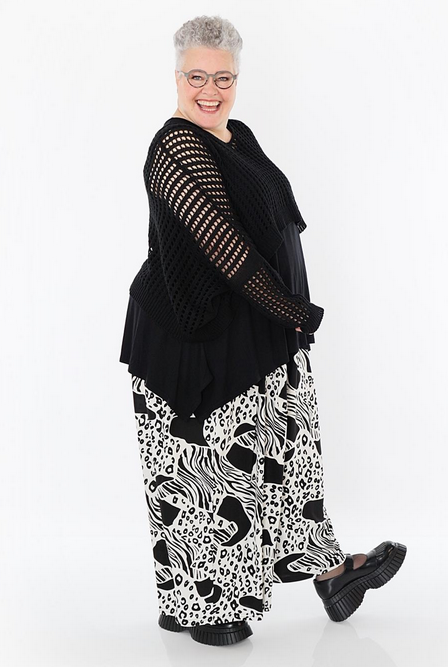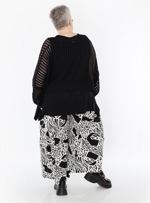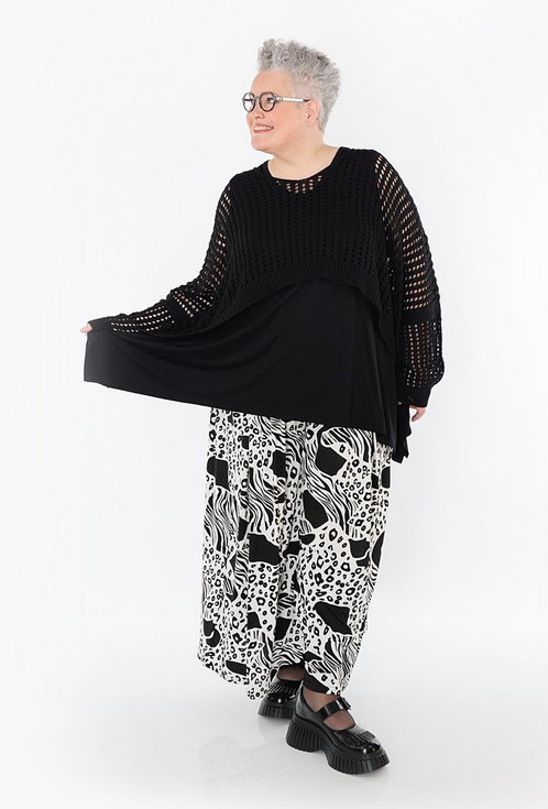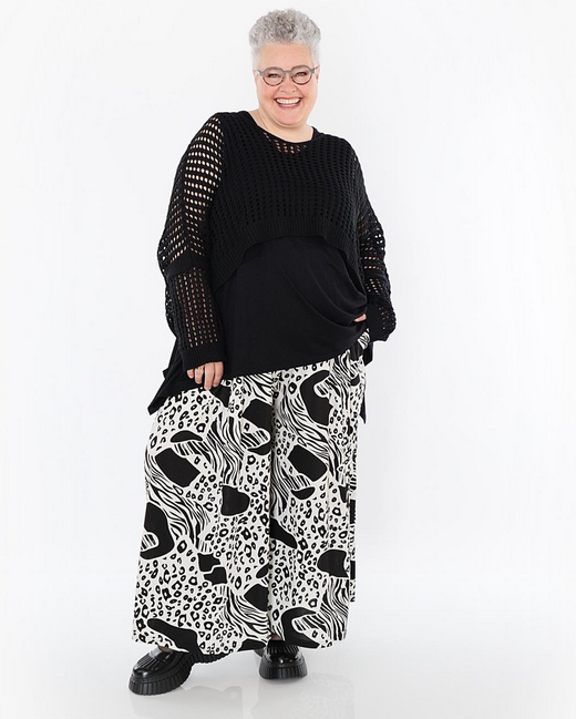AKH Sommer Hose in Palazzo Form aus feiner Slinky Qualität. Einheitsgröße, tragbar bis EU-Größe 62, wird gern auch von Kundinnen mit kleineren Größen oversized bzw. locker, leger getragen.