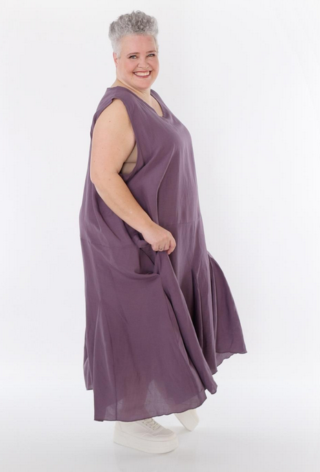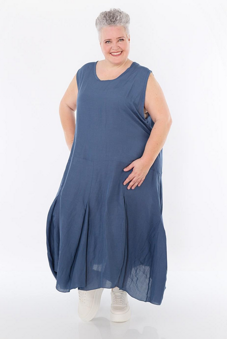 Sommer Kleid in Ballon Form aus leichter Leinen Optik Qualität. Einheitsgröße, tragbar bis EU-Größe 54, wird gern auch von Kundinnen mit kleineren Größen oversized bzw. locker, leger getragen.
