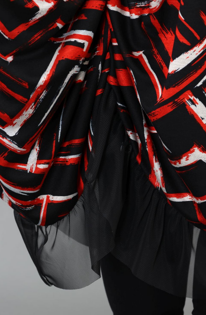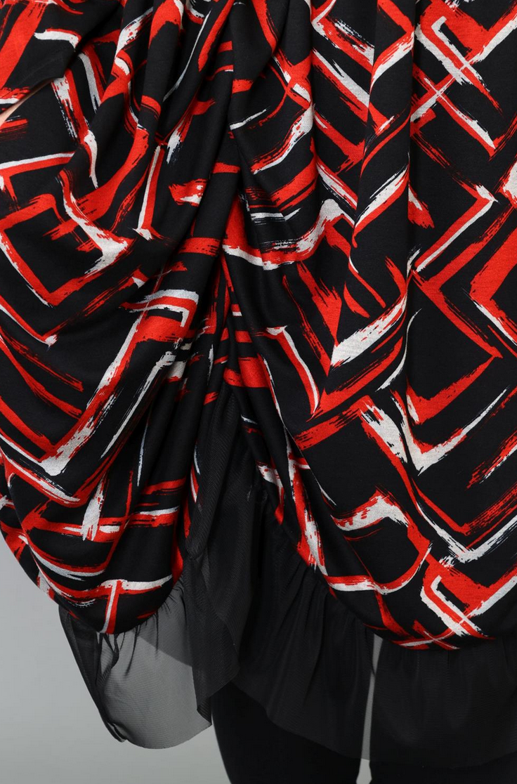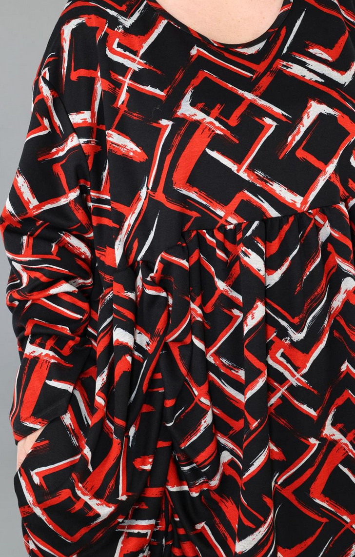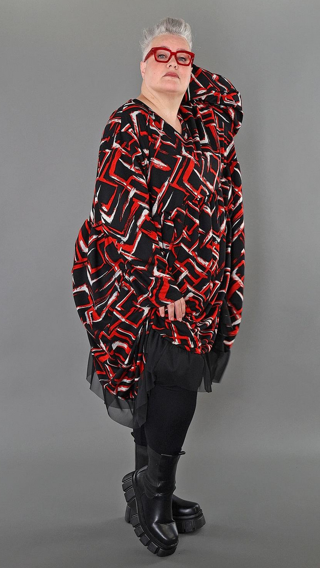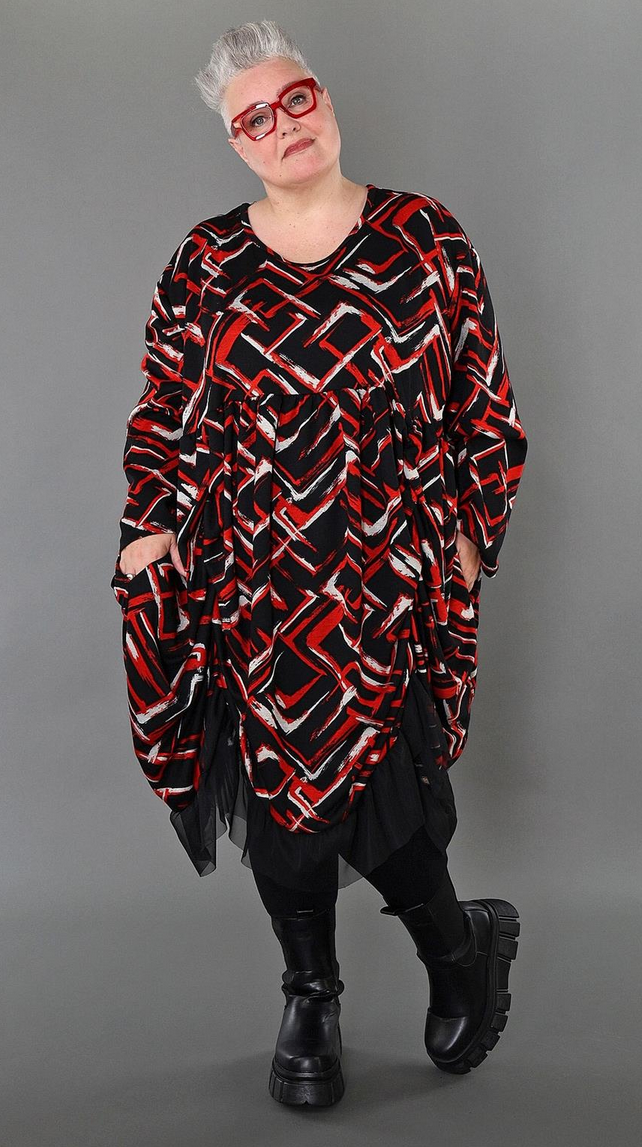 Übergangs Kleid in Ballon Form aus weicher Jacquard Qualität. Einheitsgröße, tragbar bis EU-Größe 62, wird gern auch von Kundinnen mit kleineren Größen oversized bzw. locker, leger getragen.