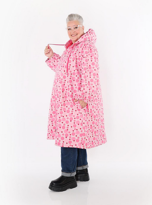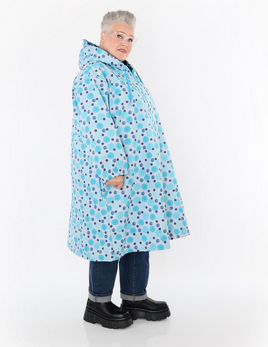 Übergangs Mantel in gerader Form aus warmer Softshell Qualität. Einheitsgröße, tragbar bis EU-Größe 54, wird gern auch von Kundinnen mit kleineren Größen oversized bzw. locker, leger getragen.