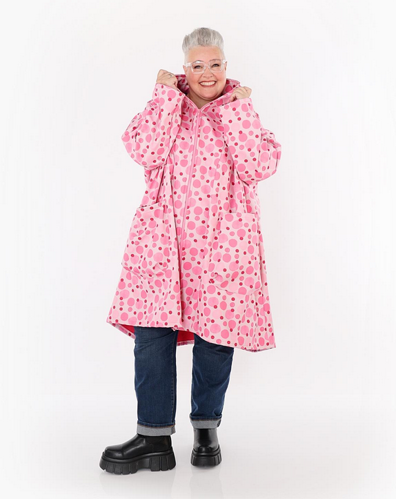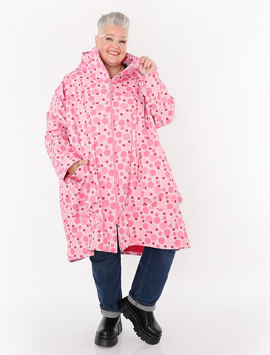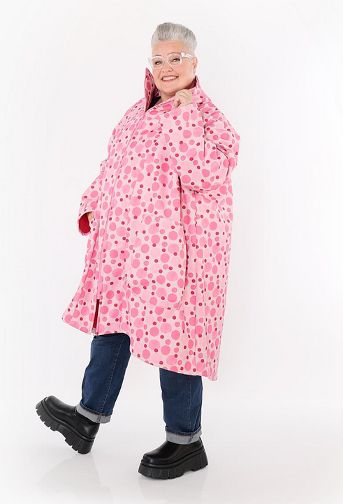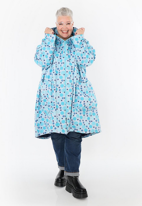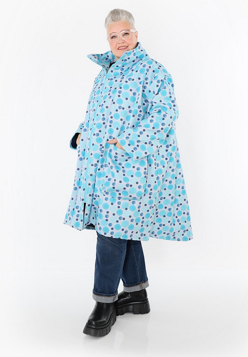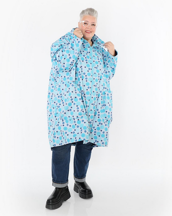 Übergangs Mantel in Vokuhila Form aus warmer Softshell Qualität. Einheitsgröße, tragbar bis EU-Größe 58, wird gern auch von Kundinnen mit kleineren Größen oversized bzw. locker, leger getragen.