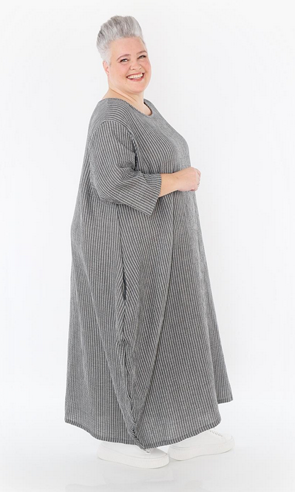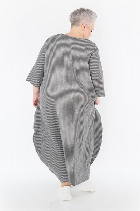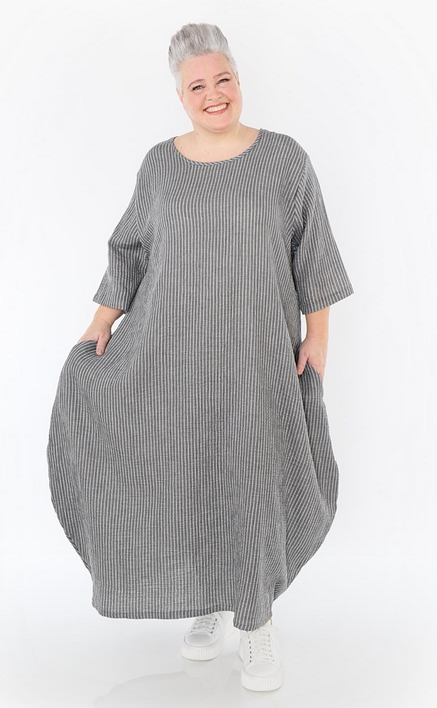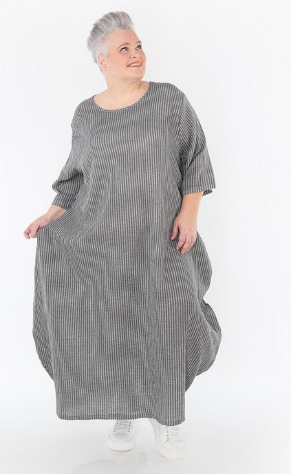 AKH Sommer Kleid in Ballon Form aus feiner Mousseline Qualität. Einheitsgröße, tragbar bis EU-Größe 52, wird gern auch von Kundinnen mit kleineren Größen oversized bzw. locker, leger getragen.