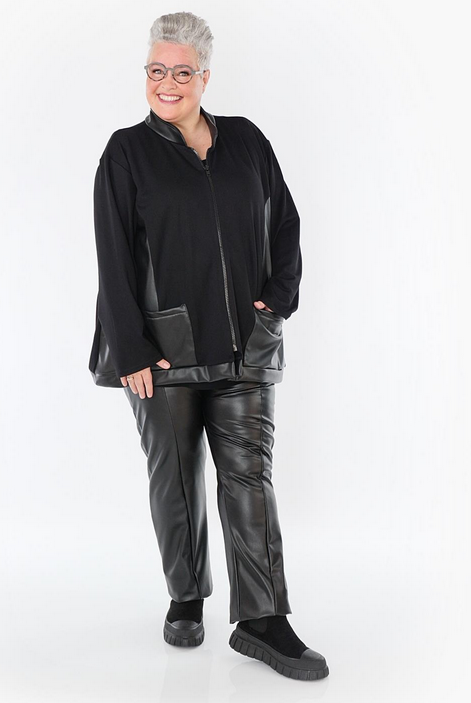 Übergangs Jacke in kastiger Form aus glatter Milano Qualität. Einheitsgröße, tragbar bis EU-Größe 54, wird gern auch von Kundinnen mit kleineren Größen oversized bzw. locker, leger getragen.