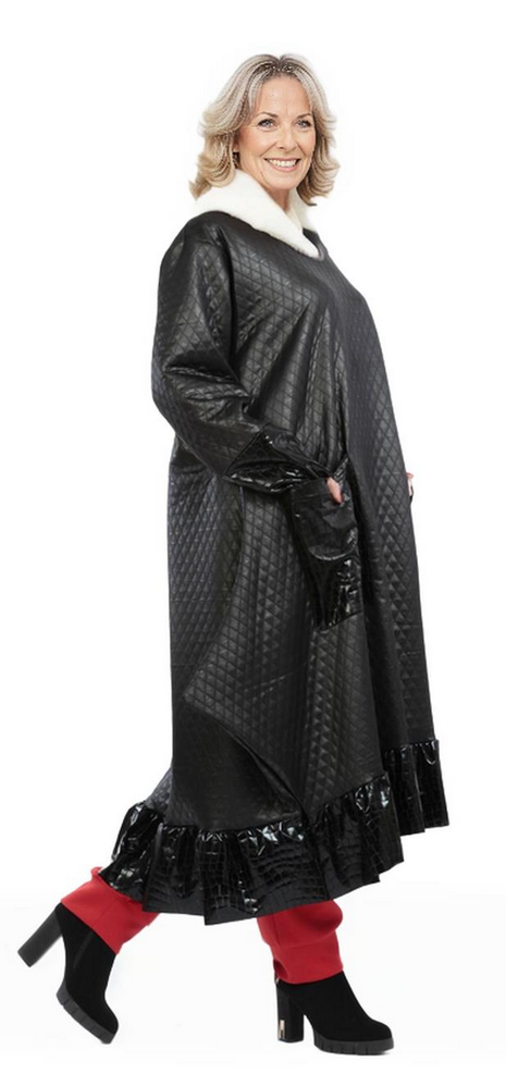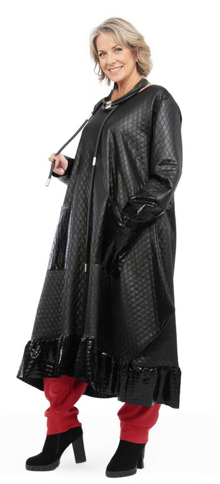 • Besonderheiten: Rauten Jaquard Stoff, Kombination mit Veganen Leder, Tüll am Saum
