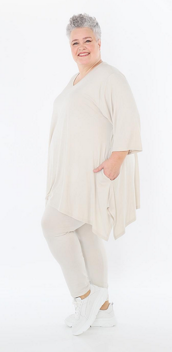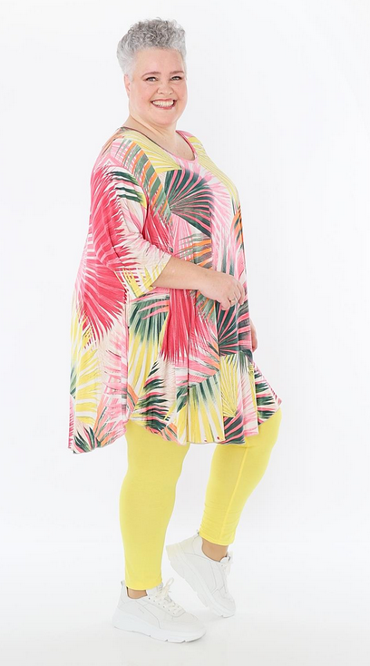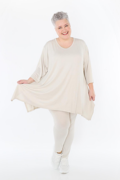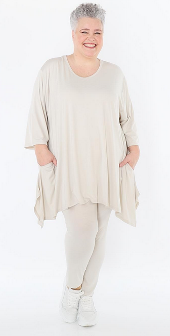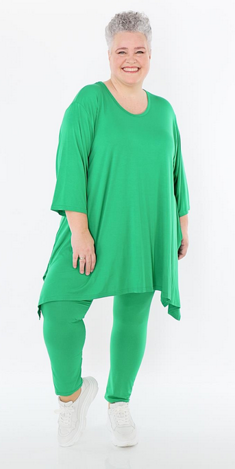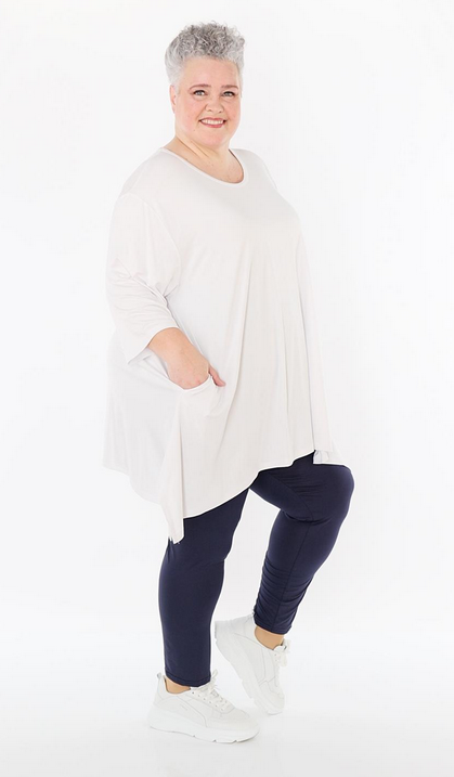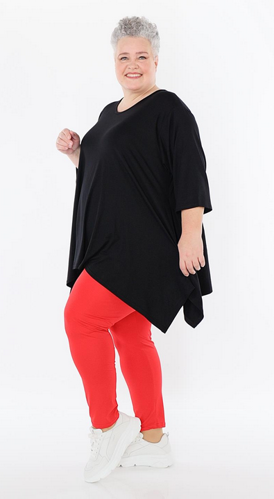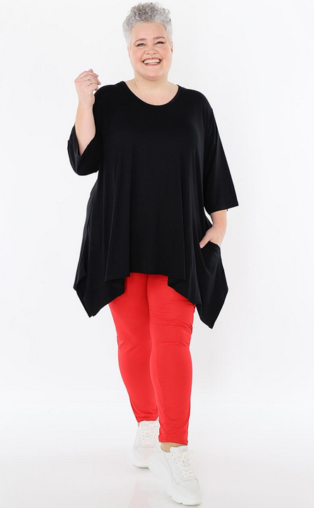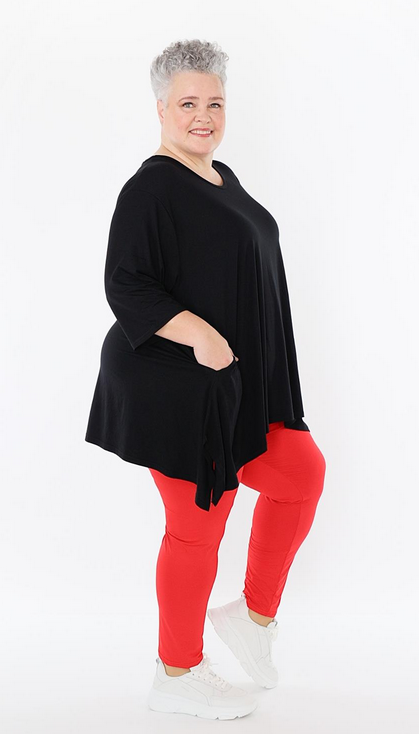 AKH Ganzjahr Leggings in gerader Form aus feiner Jersey Qualität. Einheitsgröße, tragbar bis EU-Größe 52, wird gern auch von Kundinnen mit kleineren Größen oversized bzw. locker, leger getragen.