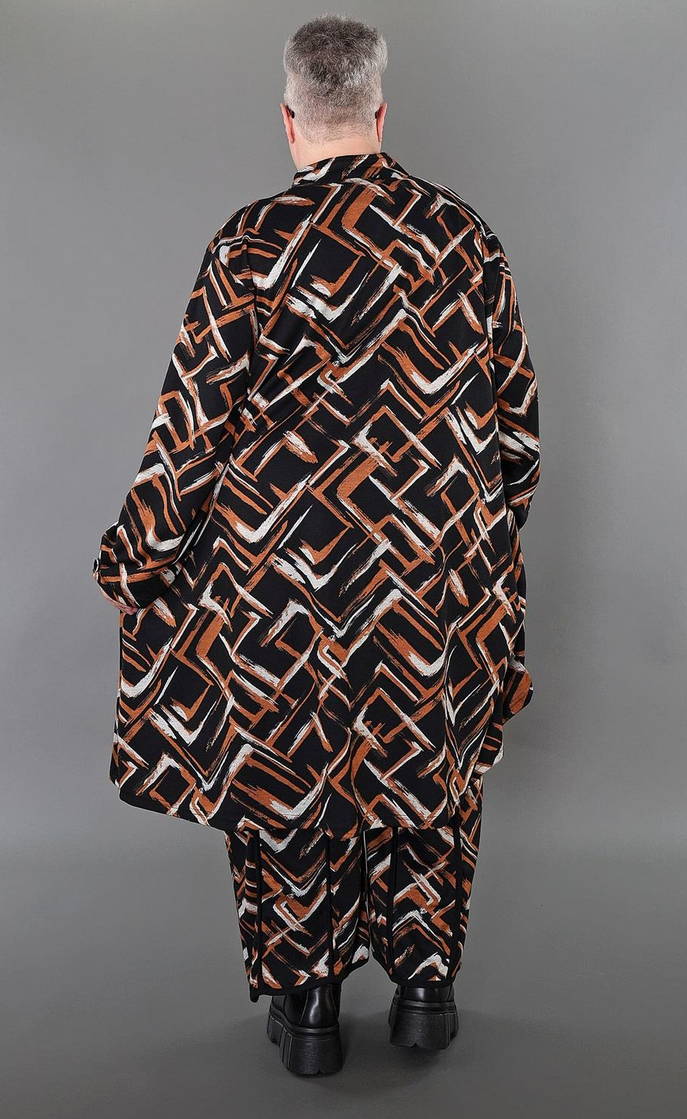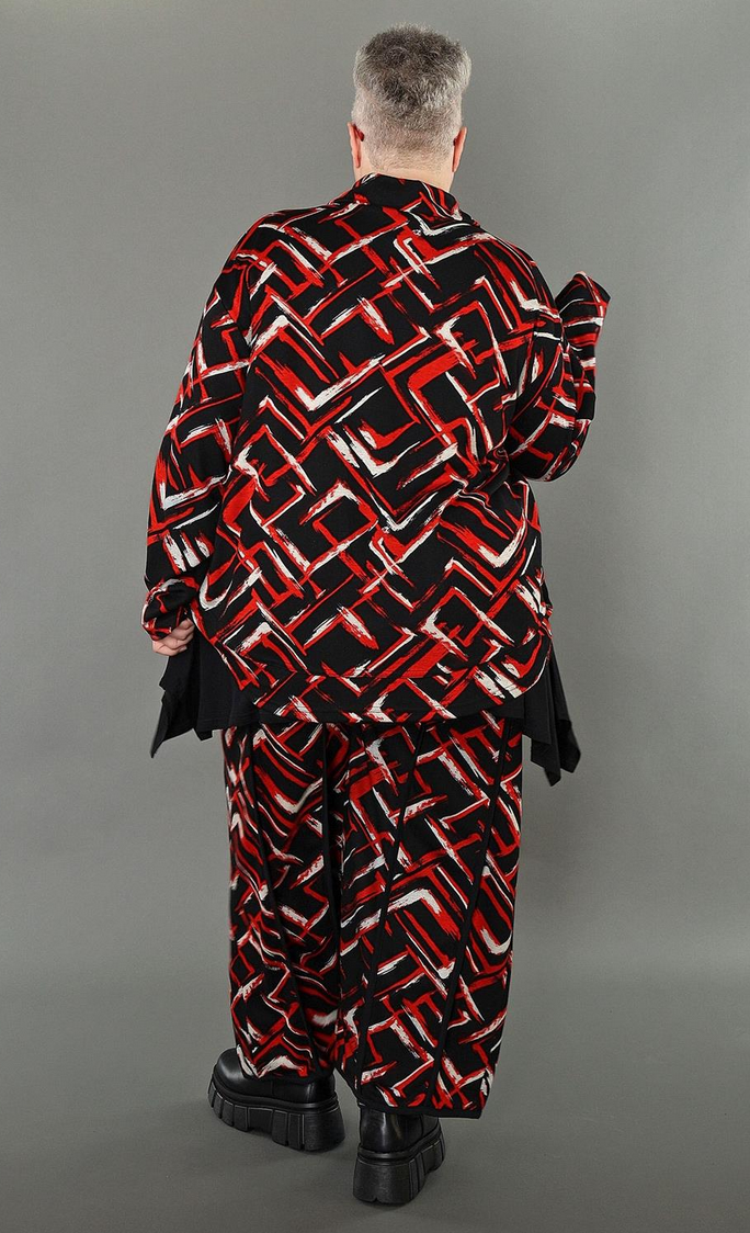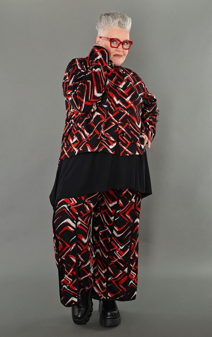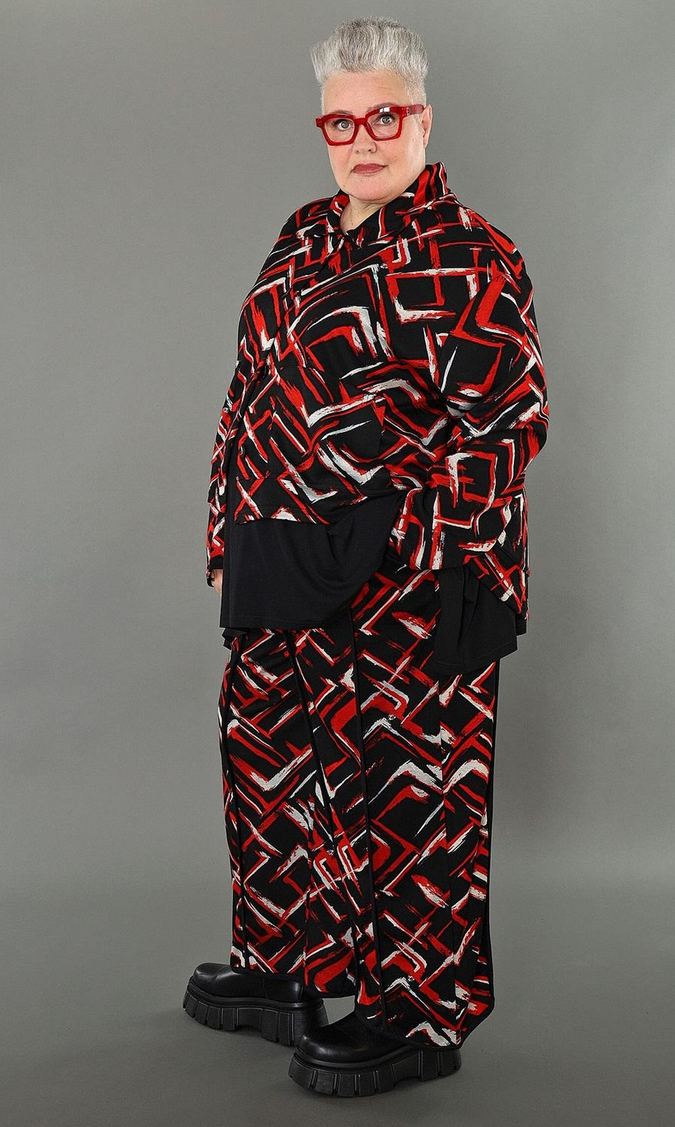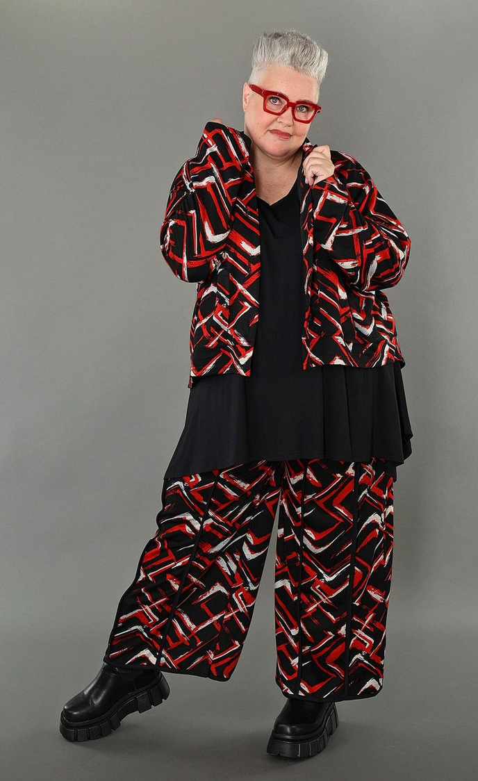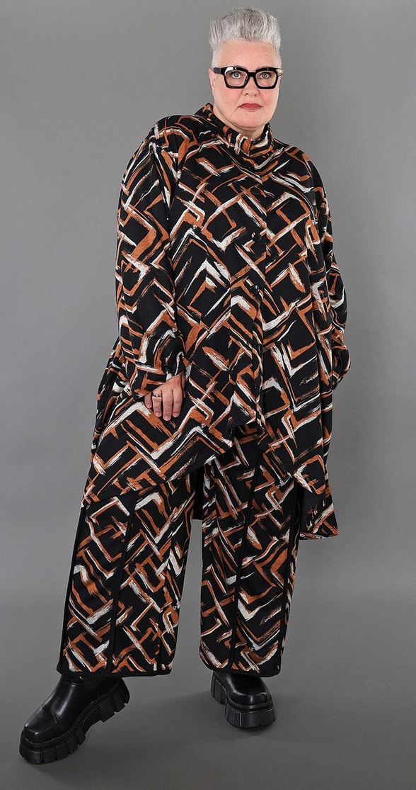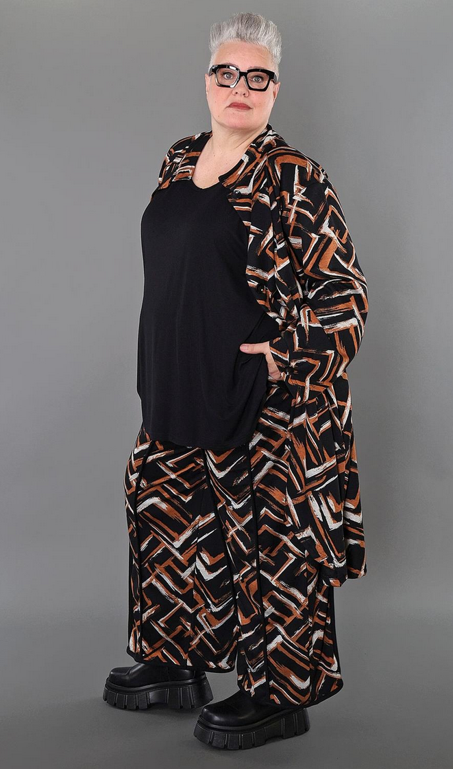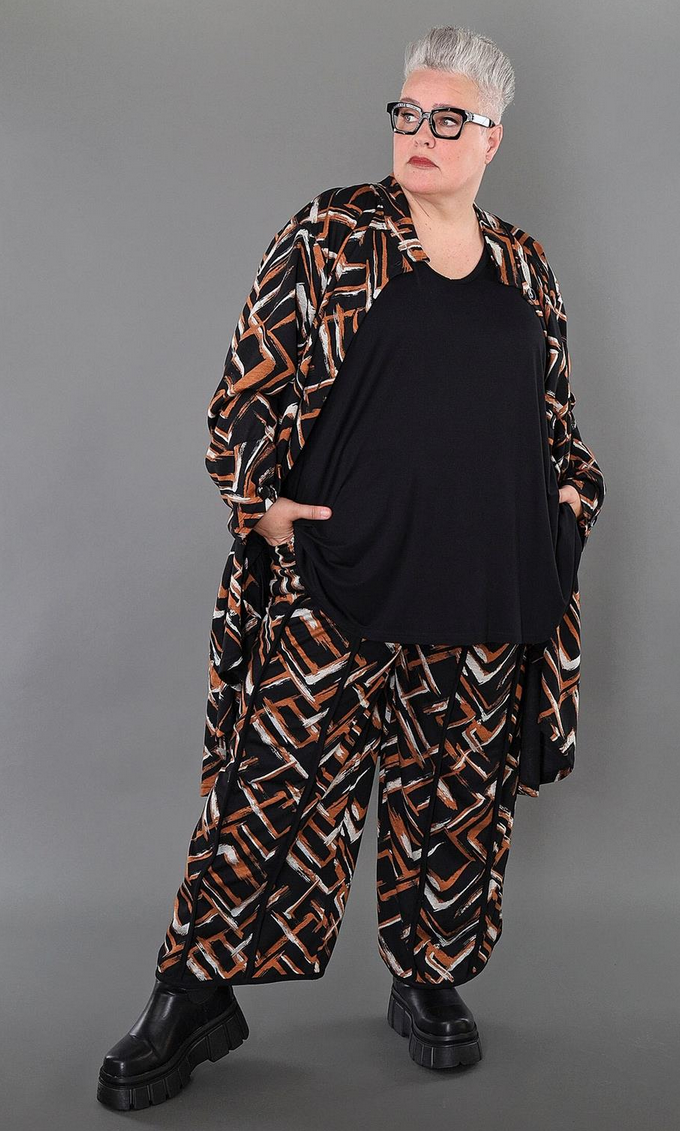 Übergangs Hose in gerader Form aus weicher Jacquard Qualität. Einheitsgröße, tragbar bis EU-Größe 64, wird gern auch von Kundinnen mit kleineren Größen oversized bzw. locker, leger getragen.