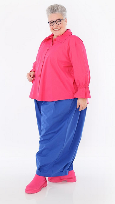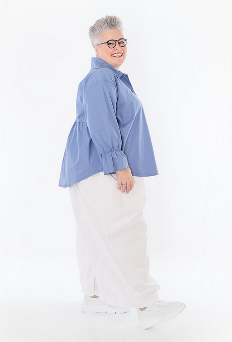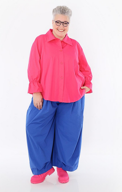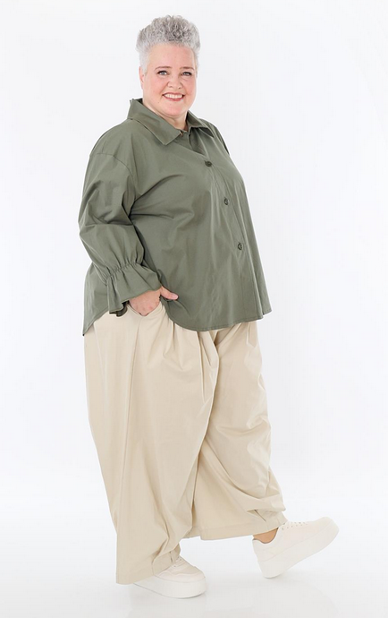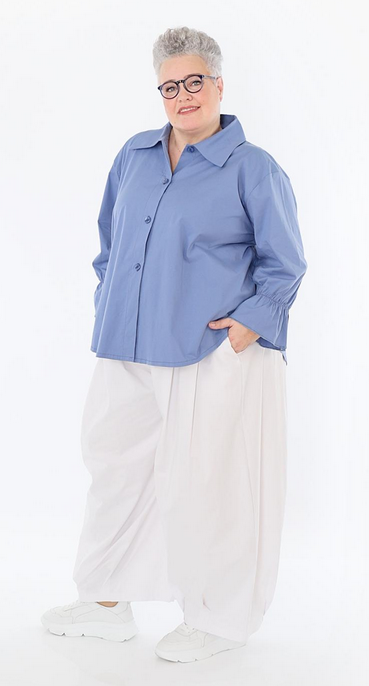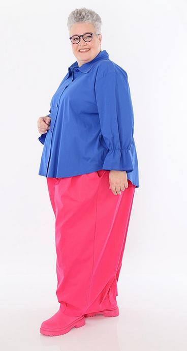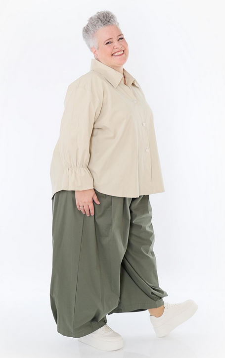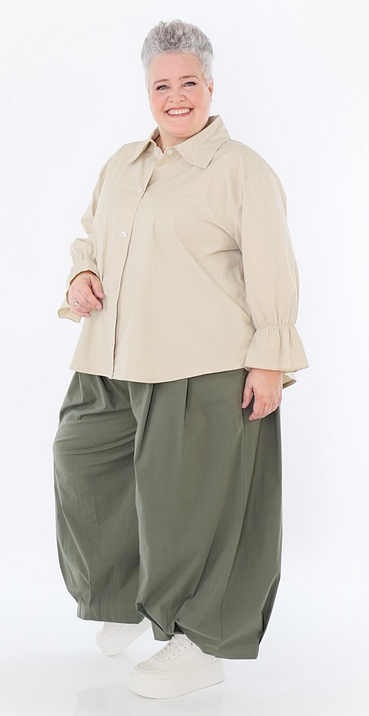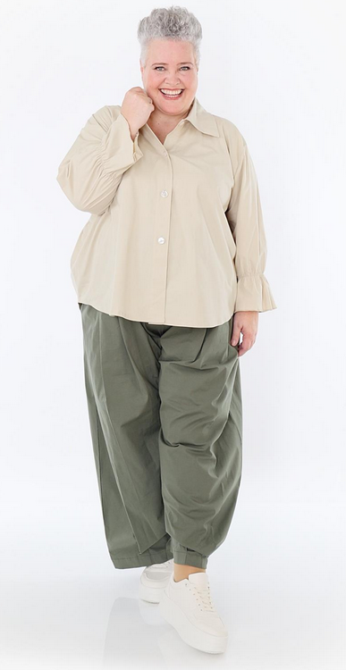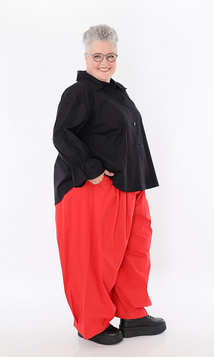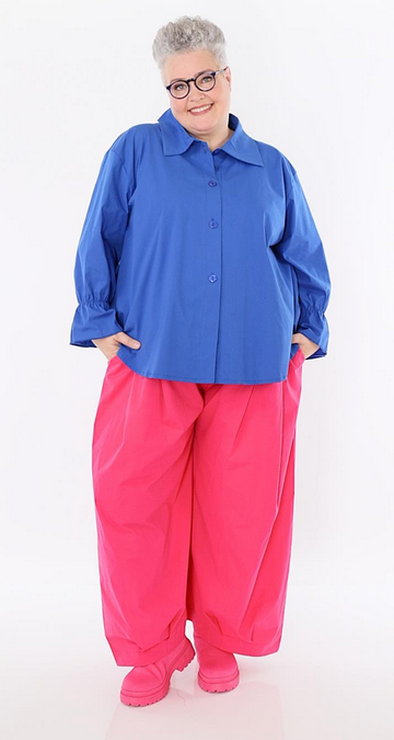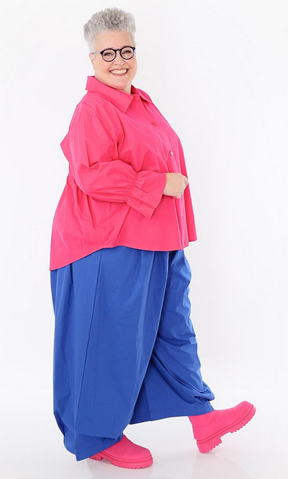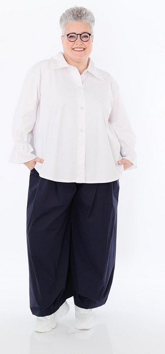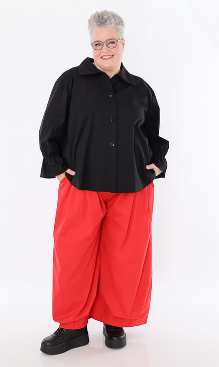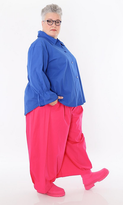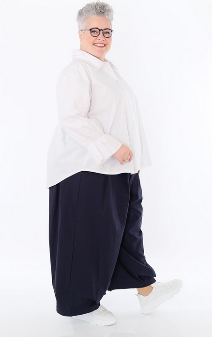 AKH Sommer Hose in Ballon Form aus feiner Popeline Qualität. Einheitsgröße, tragbar bis EU-Größe 58, wird gern auch von Kundinnen mit kleineren Größen oversized bzw. locker, leger getragen.