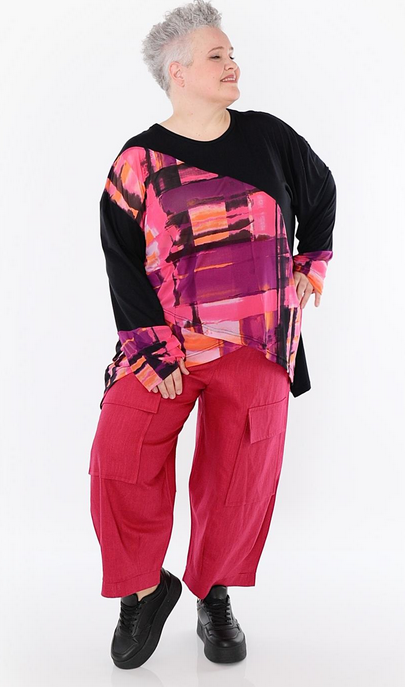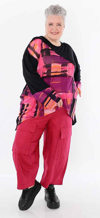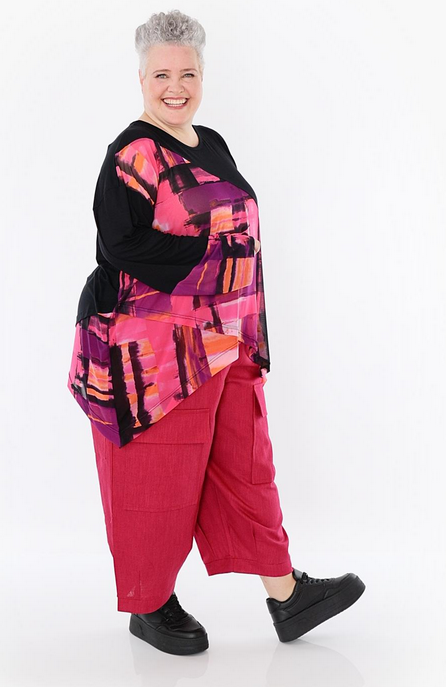AKH Sommer Hose in gerader Form aus luftiger Leinen Qualität. Einheitsgröße, tragbar bis EU-Größe 56, wird gern auch von Kundinnen mit kleineren Größen oversized bzw. locker, leger getragen.