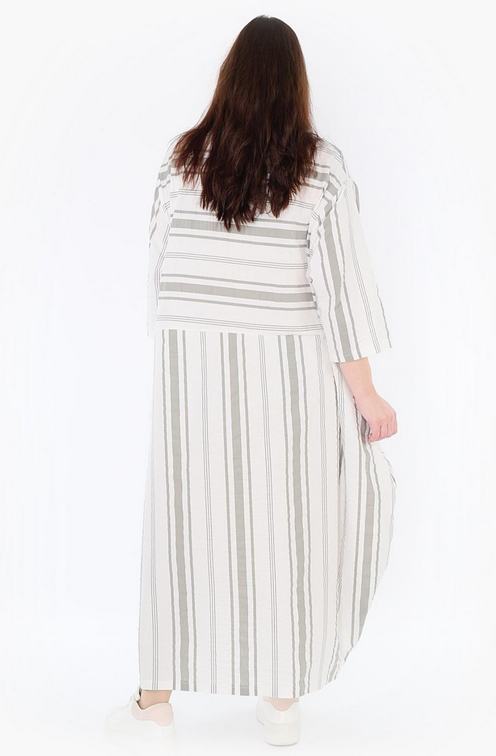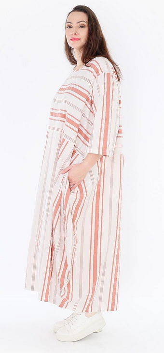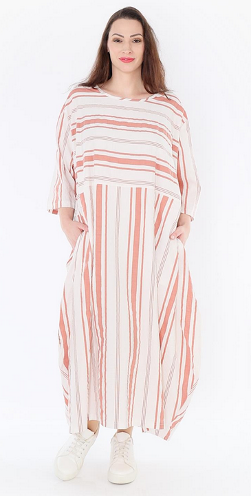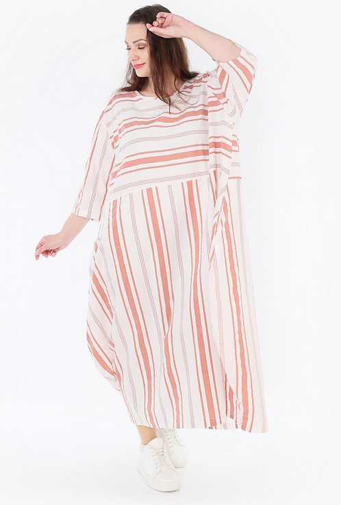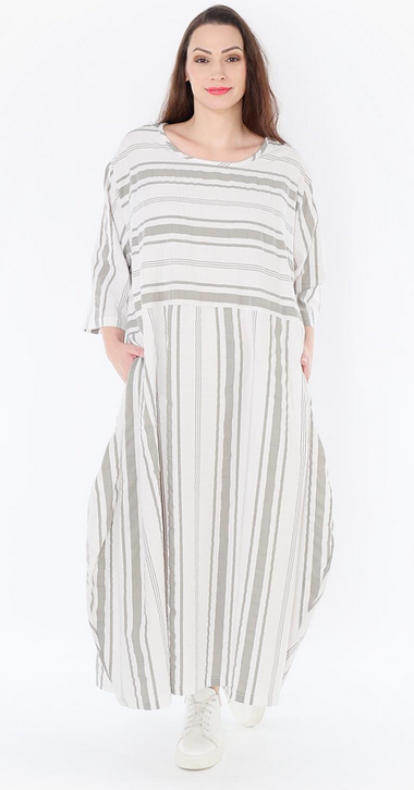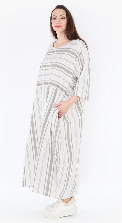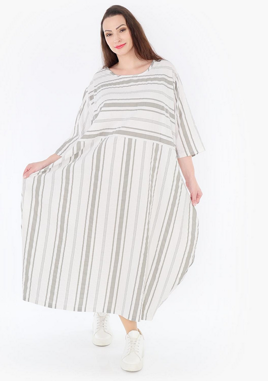AKH Sommer Kleid in Ballon Form aus leichter Seersucker Qualität. Einheitsgröße, tragbar bis EU-Größe 54, wird gern auch von Kundinnen mit kleineren Größen oversized bzw. locker, leger getragen.
