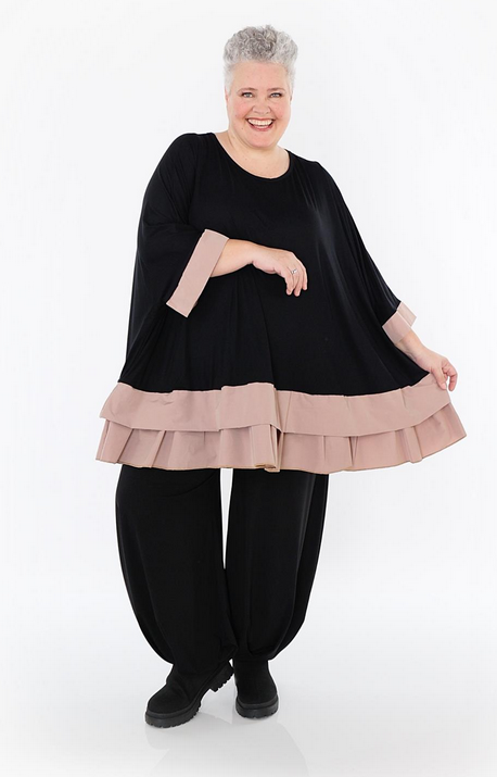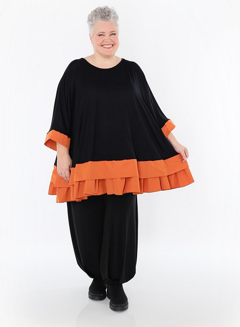 Ganzjahr Big Shirt in A-Form aus feiner Jersey Qualität. Einheitsgröße, tragbar bis EU-Größe 68, wird gern auch von Kundinnen mit kleineren Größen oversized bzw. locker, leger getragen.