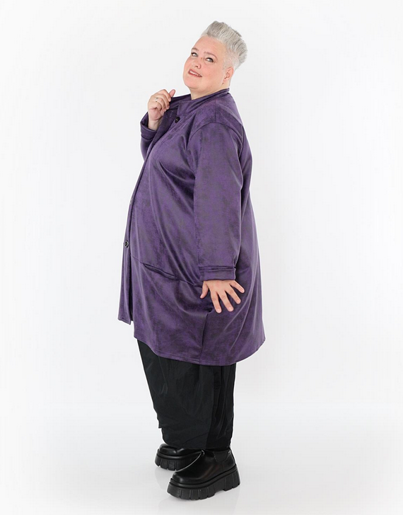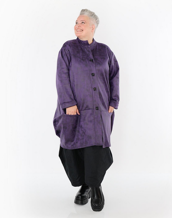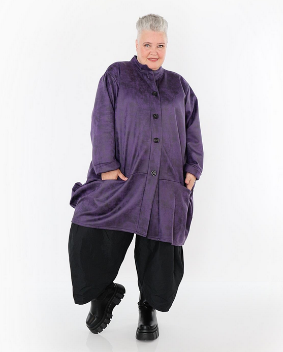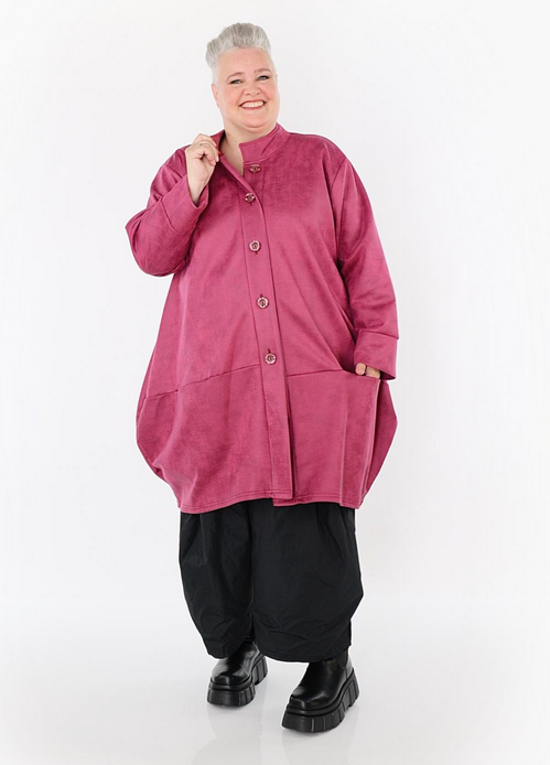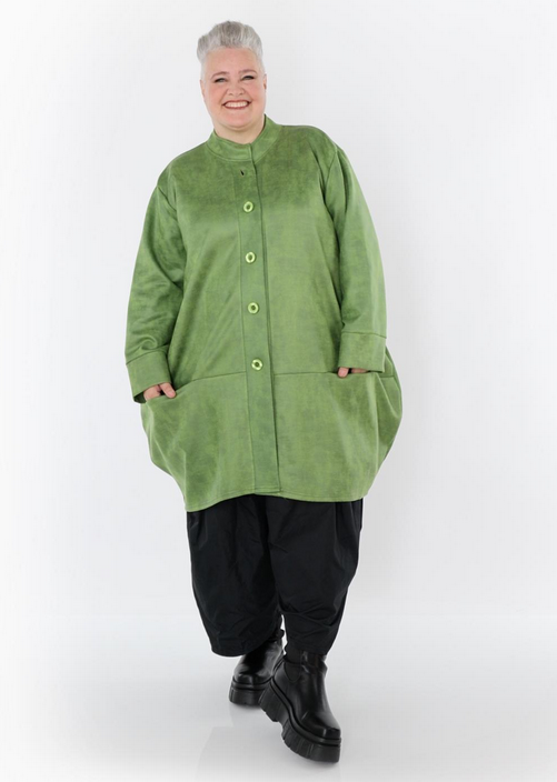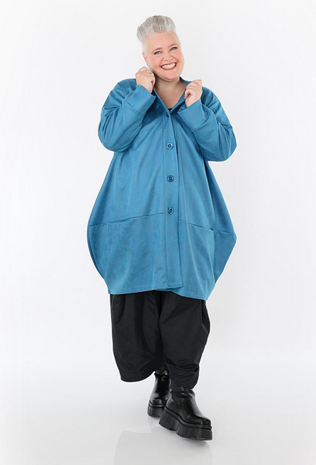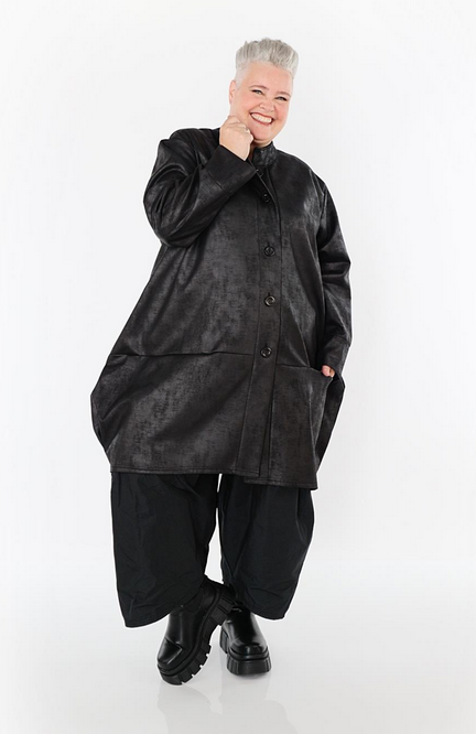 Ganzjahr Jacke in Ballon Form aus weicher Lederimitat Qualität. Einheitsgröße, tragbar bis EU-Größe 52, wird gern auch von Kundinnen mit kleineren Größen oversized bzw. locker, leger getragen.