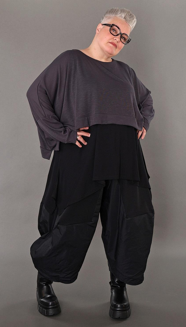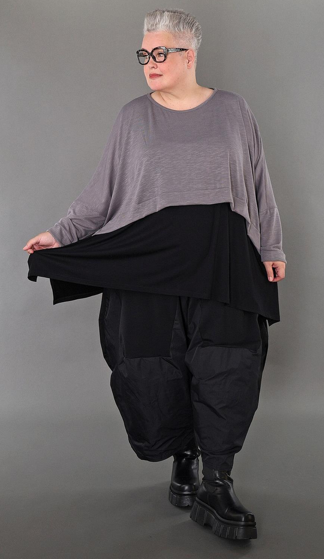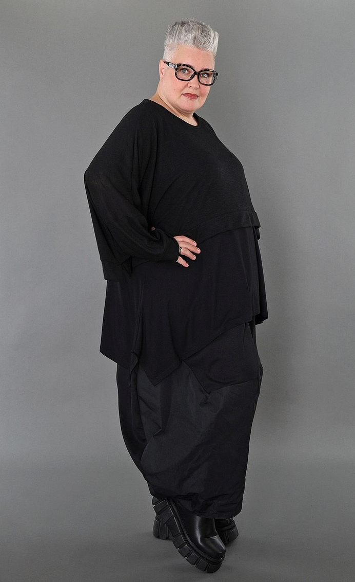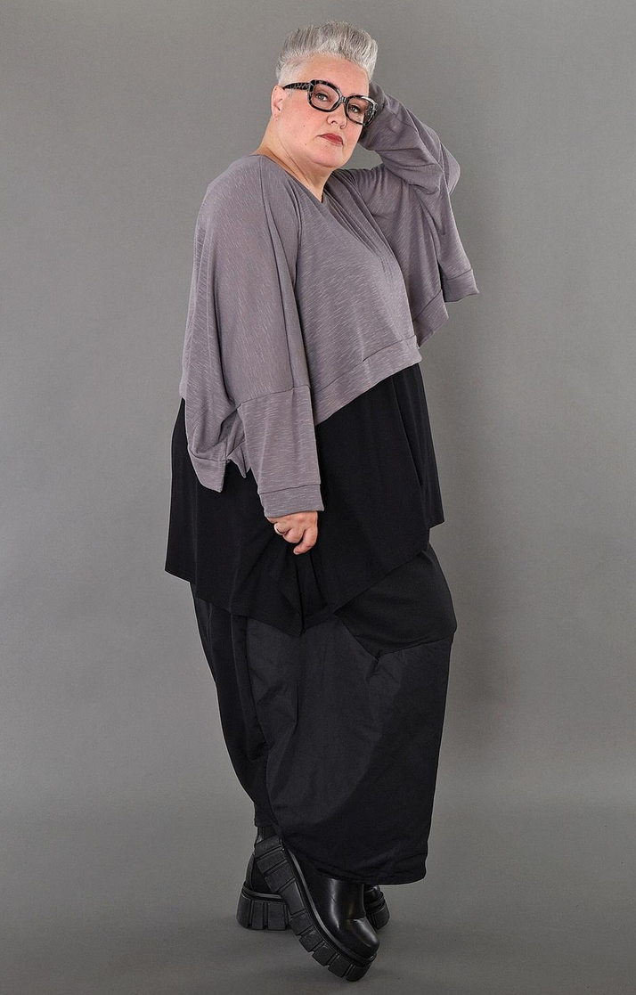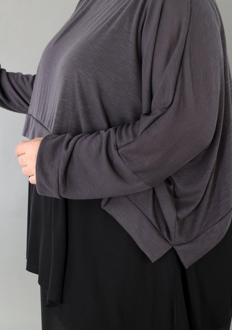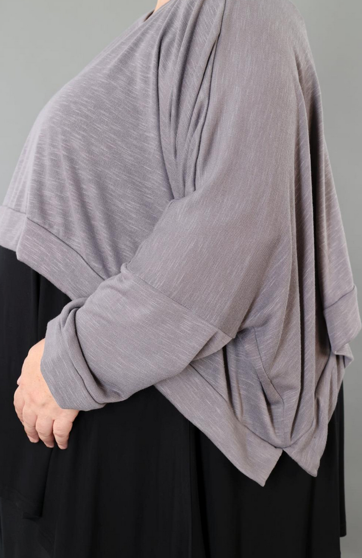 Übergangs Überwurf in kastiger Form aus weicher Feinstrick Qualität. Einheitsgröße, tragbar bis EU-Größe 64, wird gern auch von Kundinnen mit kleineren Größen oversized bzw. locker, leger getragen.