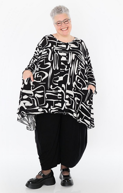Sommer Big Shirt in A-Form aus leichter Georgette Qualität. Einheitsgröße, tragbar bis EU-Größe 66, wird gern auch von Kundinnen mit kleineren Größen oversized bzw. locker, leger getragen.