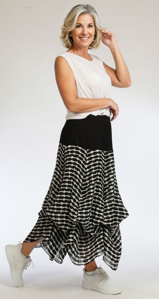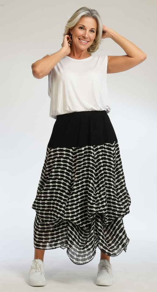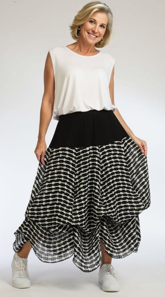 AKH Sommer Rock in Ballon Form aus leichter Plissee Qualität. Einheitsgröße, tragbar bis EU-Größe 50, wird gern auch von Kundinnen mit kleineren Größen oversized bzw. locker, leger getragen.