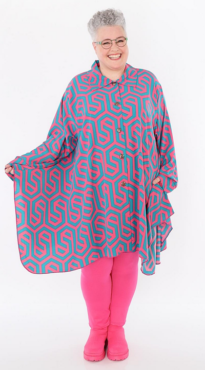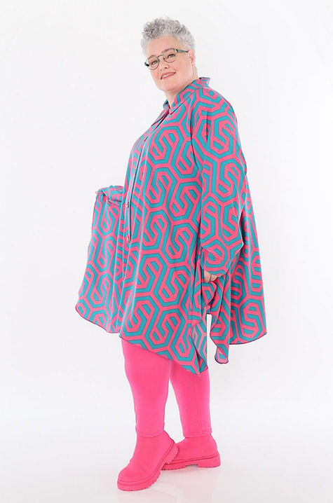 Bluzë verore AKH me siluetë në formë A, e bërë nga puplin i hollë. Një madhësi i përshtatet të gjithëve, mund të vishet deri në madhësinë 56 të BE-së, dhe është gjithashtu e popullarizuar edhe tek klientët më të vegjël për veshje të mëdha ose të gjera, të përditshme.