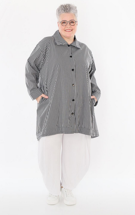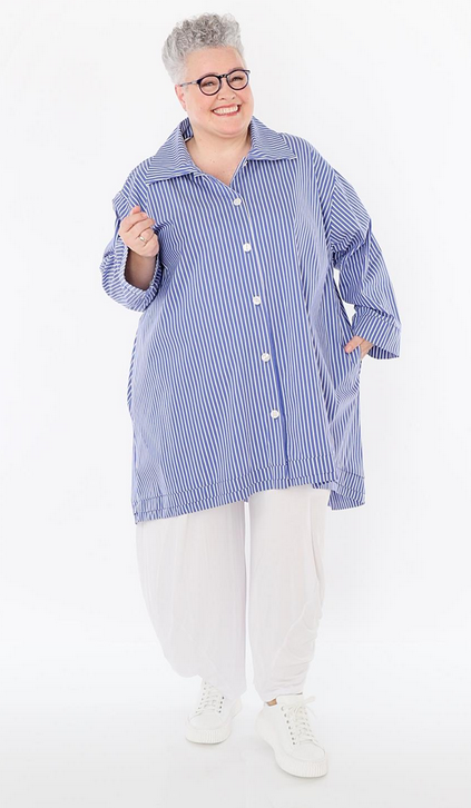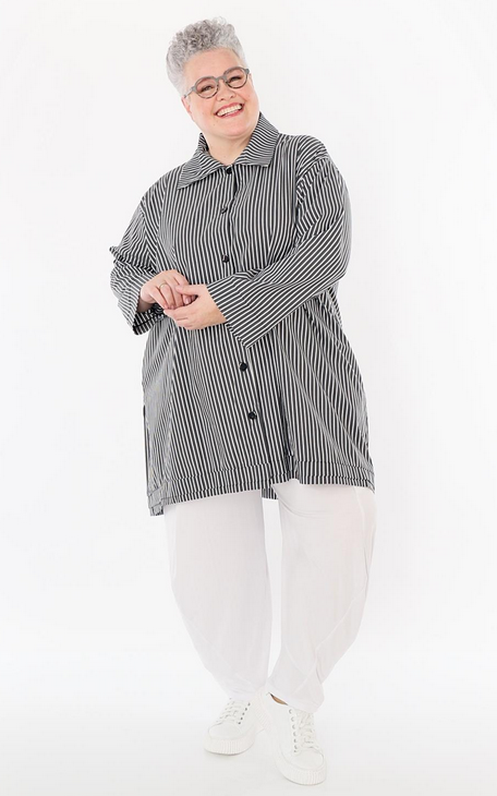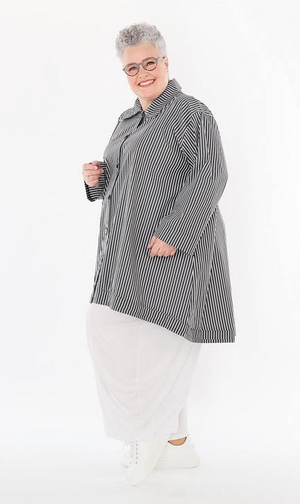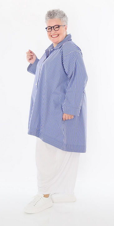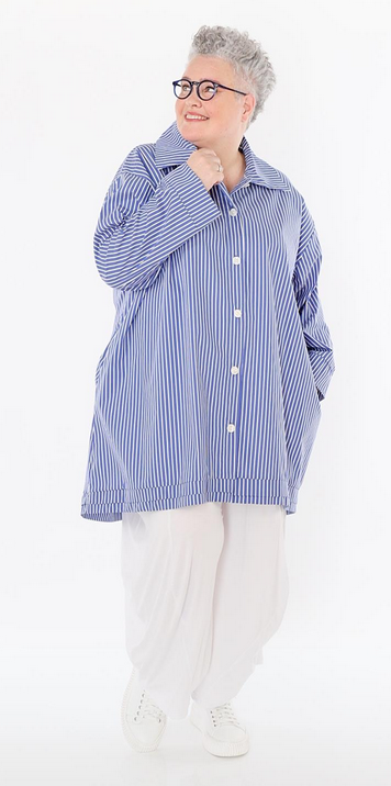 Bluzë verore AKH me siluetë në formë A, e bërë nga puplin i hollë. Një madhësi i përshtatet të gjithëve, mund të vishet deri në madhësinë 56 të BE-së, dhe është gjithashtu e popullarizuar edhe tek klientët më të vegjël për veshje të mëdha ose të gjera, të përditshme.
