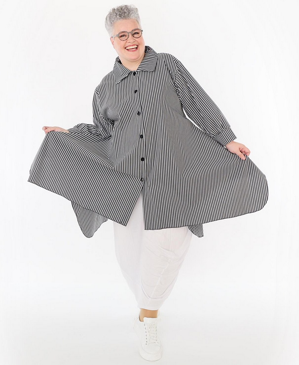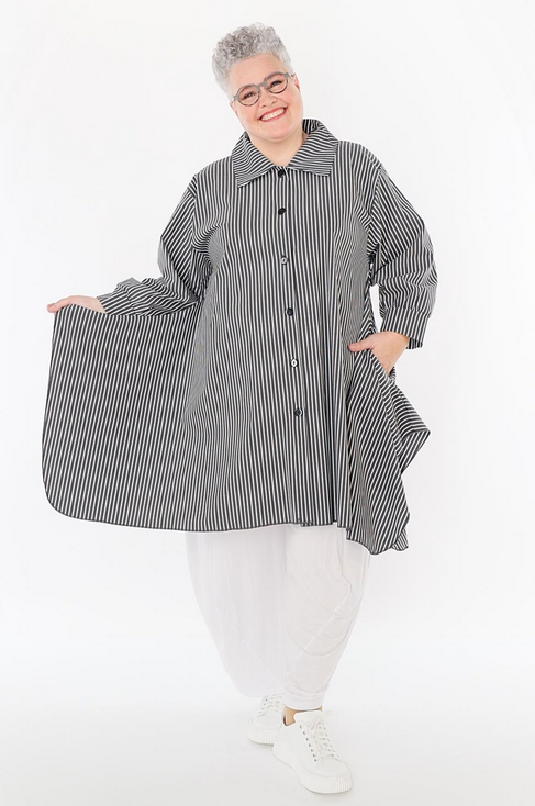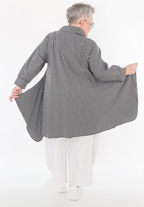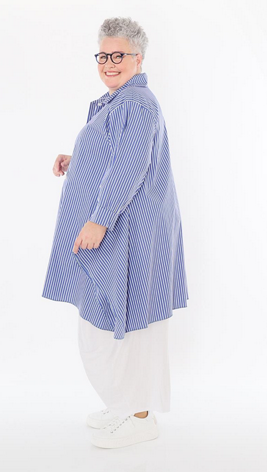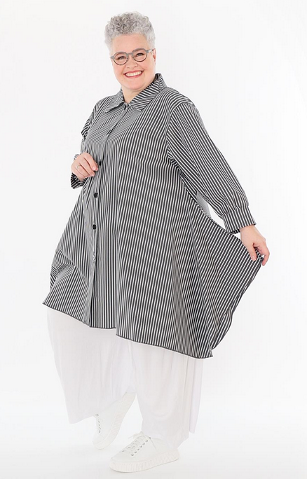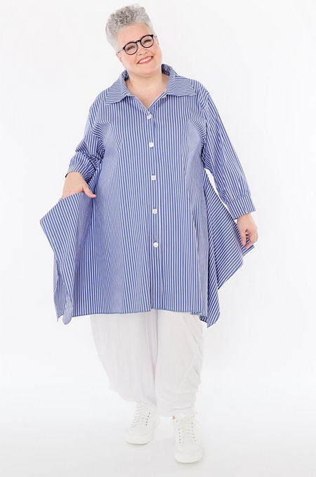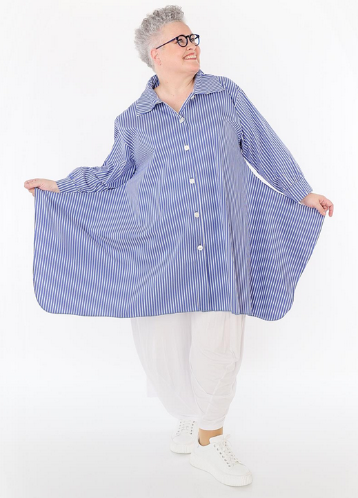 Bluzë verore AKH me siluetë në formë A, e bërë nga puplin i hollë. Një madhësi i përshtatet të gjithëve, mund të vishet deri në madhësinë 48 të BE-së, dhe është gjithashtu e popullarizuar edhe tek klientët më të vegjël për veshje të mëdha ose të gjera, të përditshme.