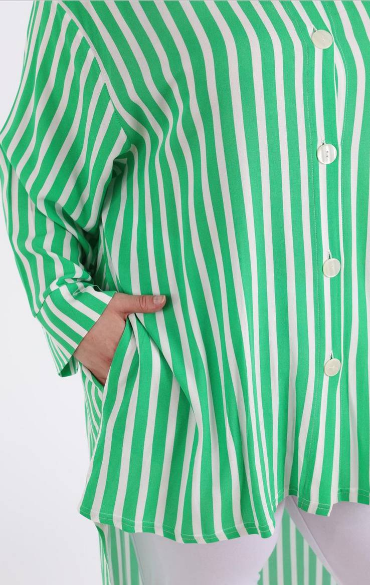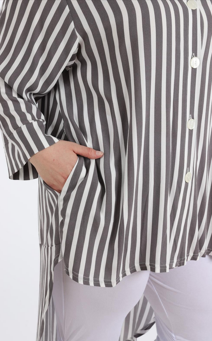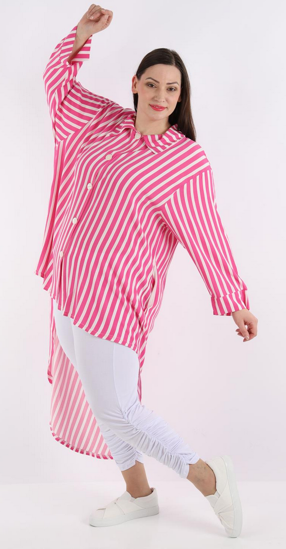 Bluzë verore AKH në formë qepeni të bërë nga krepi i lehtë. Një madhësi i përshtatet të gjithëve, mund të vishet deri në madhësinë 54 të BE-së, dhe është gjithashtu e popullarizuar tek klientët në madhësi më të vogla, qoftë të veshura oversize apo lirshëm.